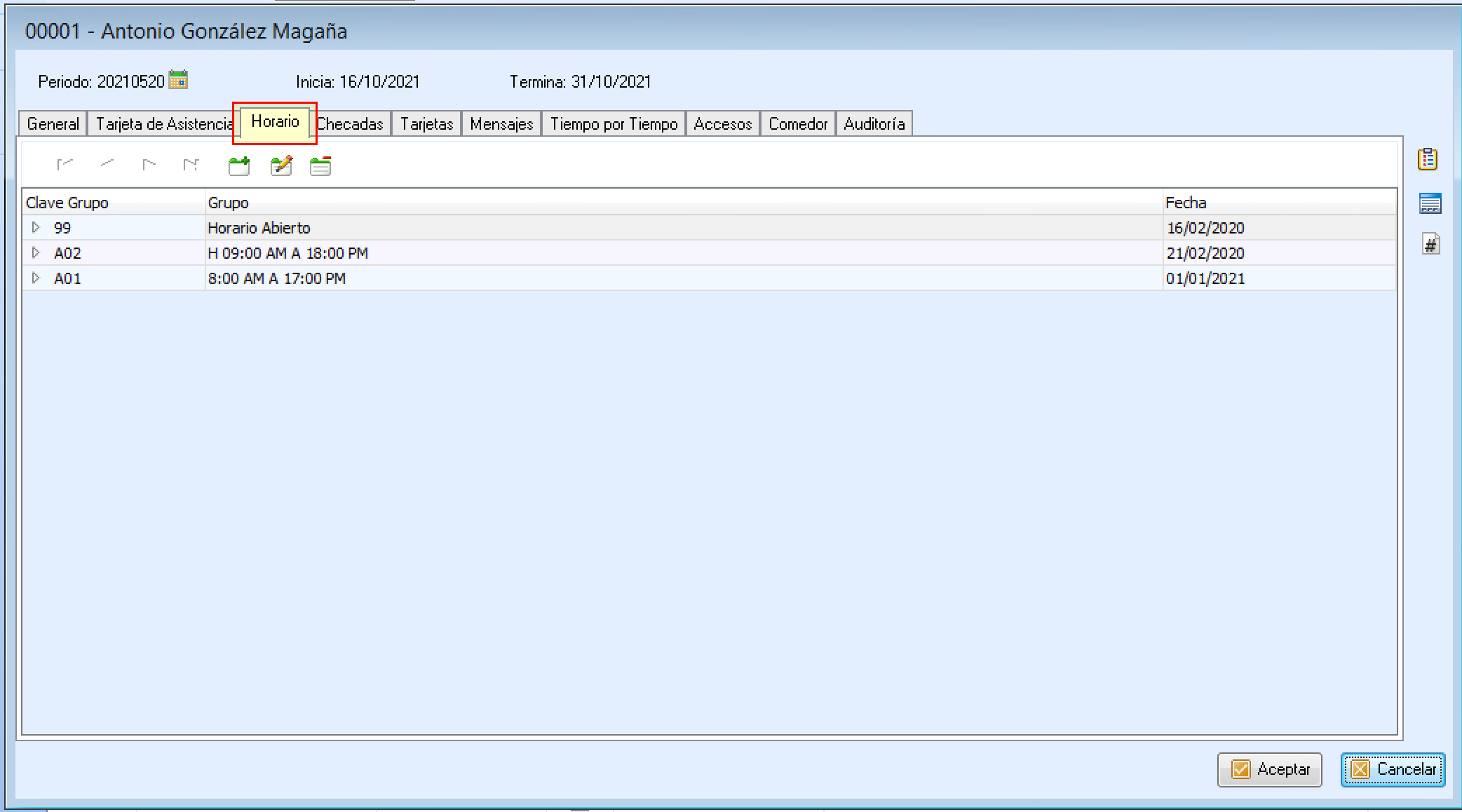 Kardex Empleado - Cambio de Horarios